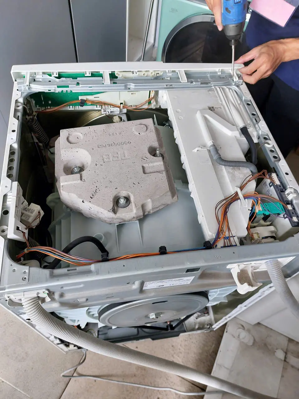 Tháo rời hoàn toàn máy giặt để vệ sinh và sửa chữa.